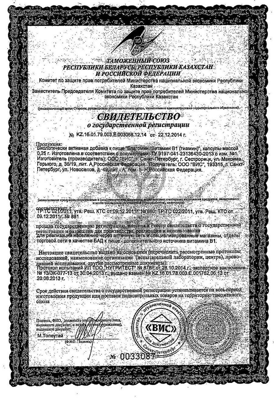 «Благомин» Витамин В1 (тиамин) рекомендуется В качестве биологически активной добавки к пище – дополнительного источника витамина В1.