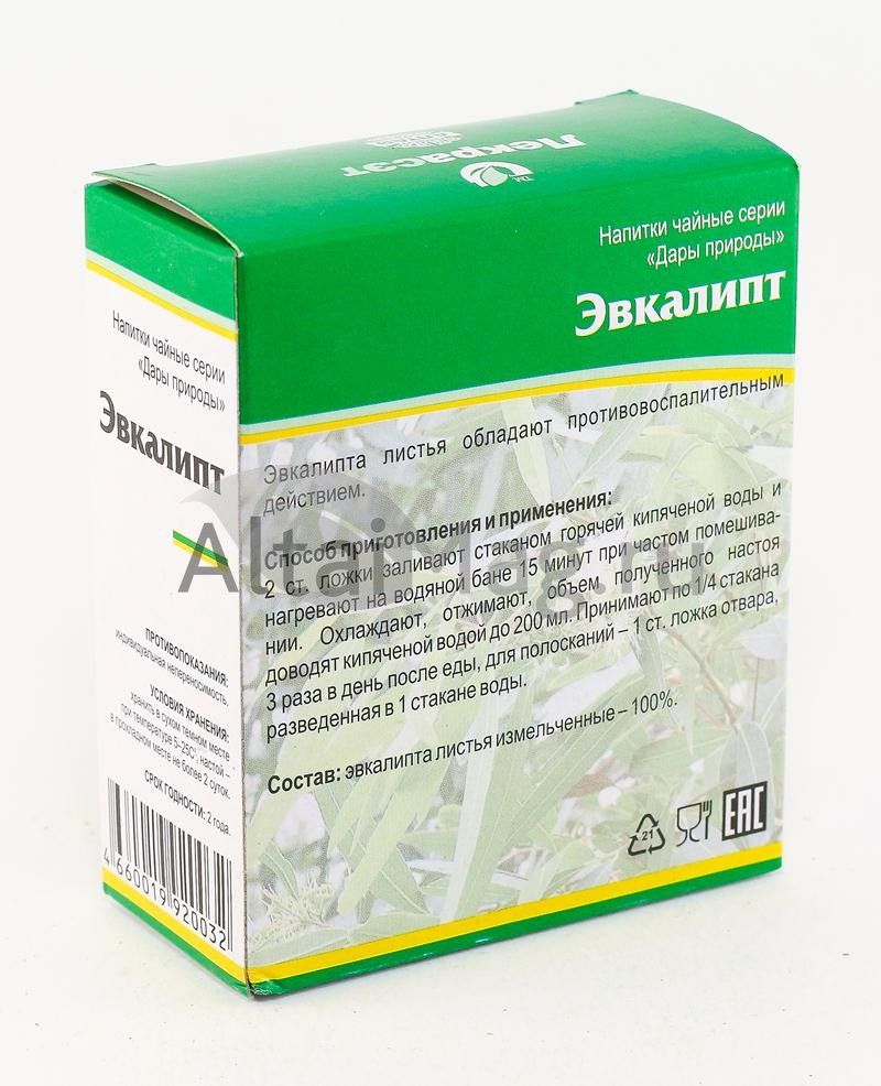• Купите Эвкалипт (лист) чайный напиток 50 г в Туле по доступной цене 75 ₽ с доставкой на дом или заберите Ваш заказ в Туле из ближайшего пункта выдачи, сделав заказ на AltaiMag.ru.