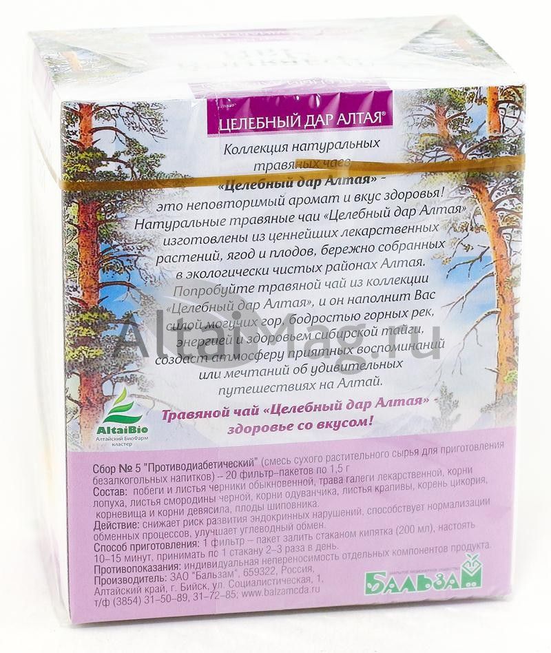- Купите Противодиабетический сбор №5, 20 пакетиков в Туле по доступной цене 130 ₽ с доставкой на дом или заберите Ваш заказ в Туле из ближайшего пункта выдачи, сделав заказ на AltaiMag.ru.