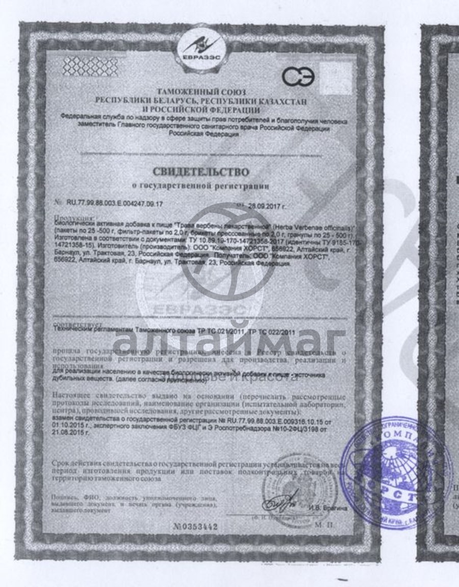 Есть вопросы по товару "Вербена лекарственная трава, Хорст 50г "?